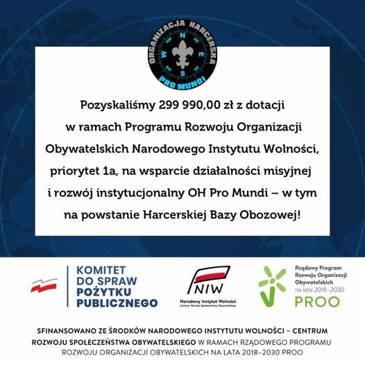 Dotacja z Programu Rozwoju Organizacji Obywatelskich z Narodowego Instytutu Wolności, priorytet 1a.
